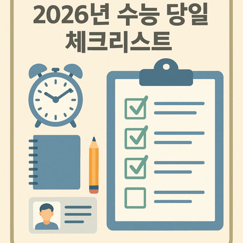 | 2026학년도 대학수학능력시험(수능) 당일 유의사항 정리 – 꼭 챙겨야 할 준비 체크리스트 (0) | 2025.11.13 |