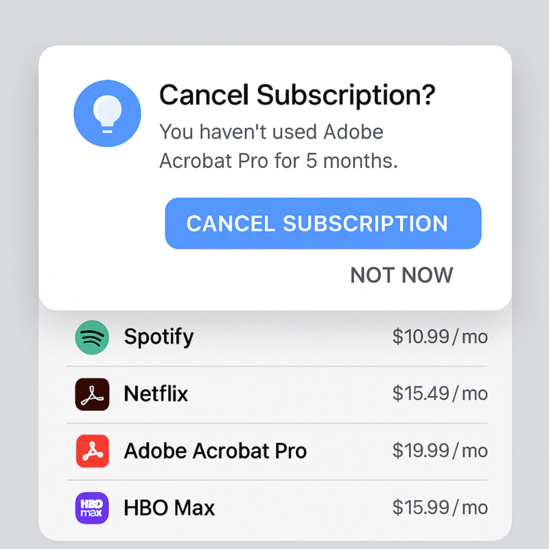 AI 앱이 소비 데이터를 스캔해 모든 구독 서비스를 자동으로 분류합니다.
