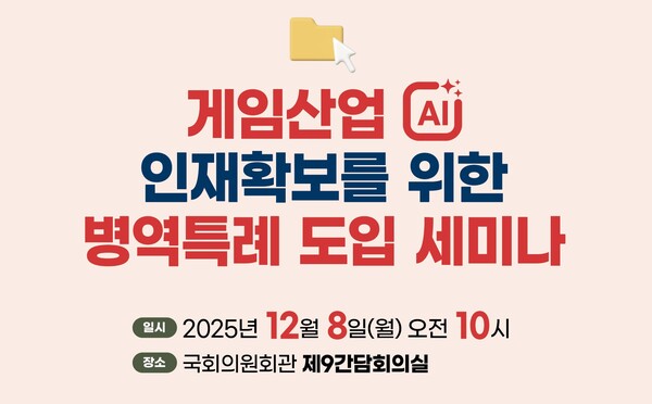 게임 산업이 급속히 AI 중심 구조로 재편되는 가운데, AI 인재 확보를 위해 병역특례 제도 도입을 논의하는 세미나가 열려 업계의 관심이 집중되고 있다.