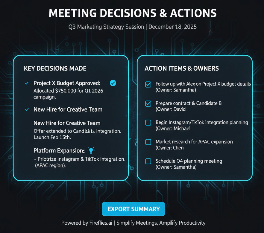 🔹 2) Fireflies.ai — 결정 사항 추적에 특화