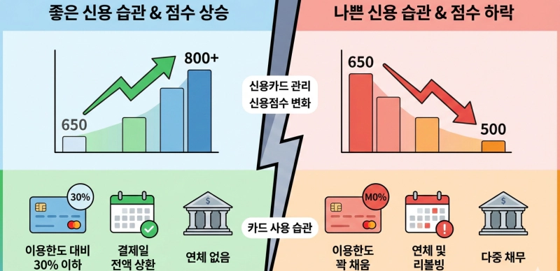 매달 반복되는 카드 사용 습관의 합이 지금의 점수를 만듭니다.