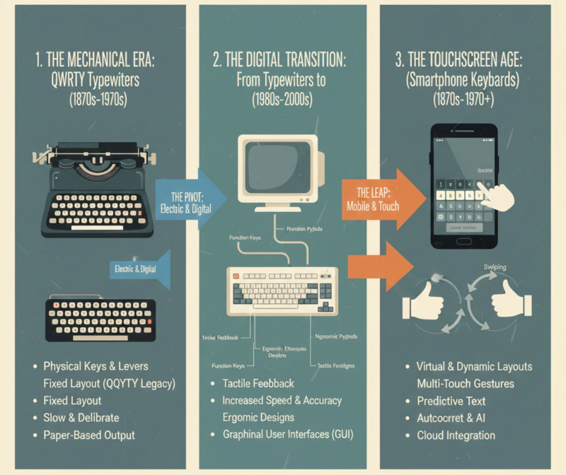 키보드의 역사는 기술 진화의 전형적인 패턴을 보여줍니다.