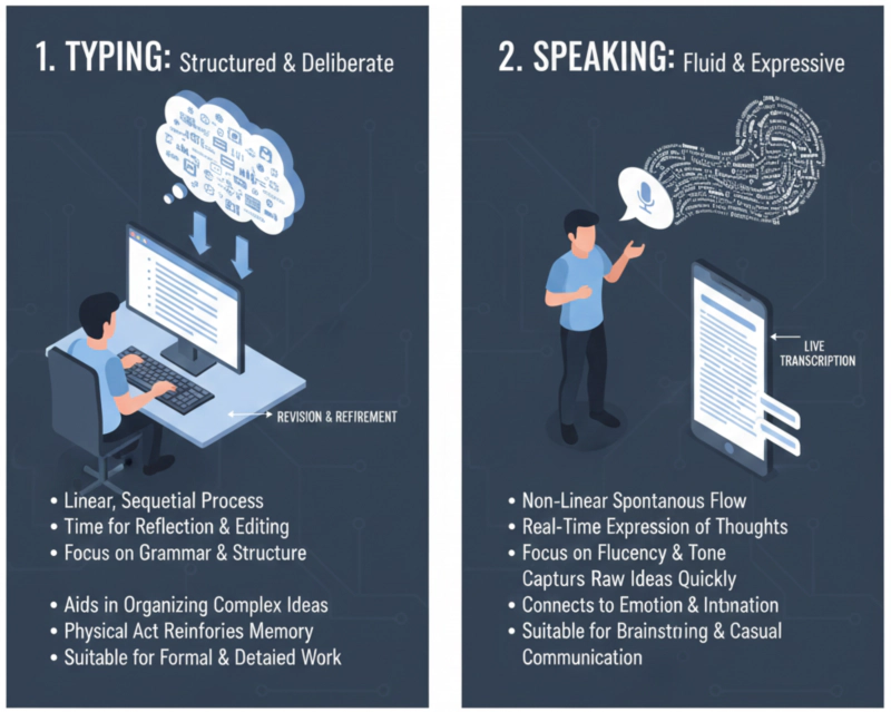👉 ‘고쳐 쓰기’와 ‘되돌리기’가 중요한데, 음성 입력은 이 부분에서 불리합니다.