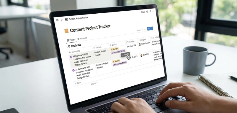 Notion 데이터베이스에서 항목을 분석·요약하고, 업무 상태를 정리하는 AI 활용 장면