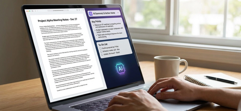 회의 메모나 긴 문서를 AI가 요약하고, 할 일 목록으로 정리해주는 실제 사용 장면