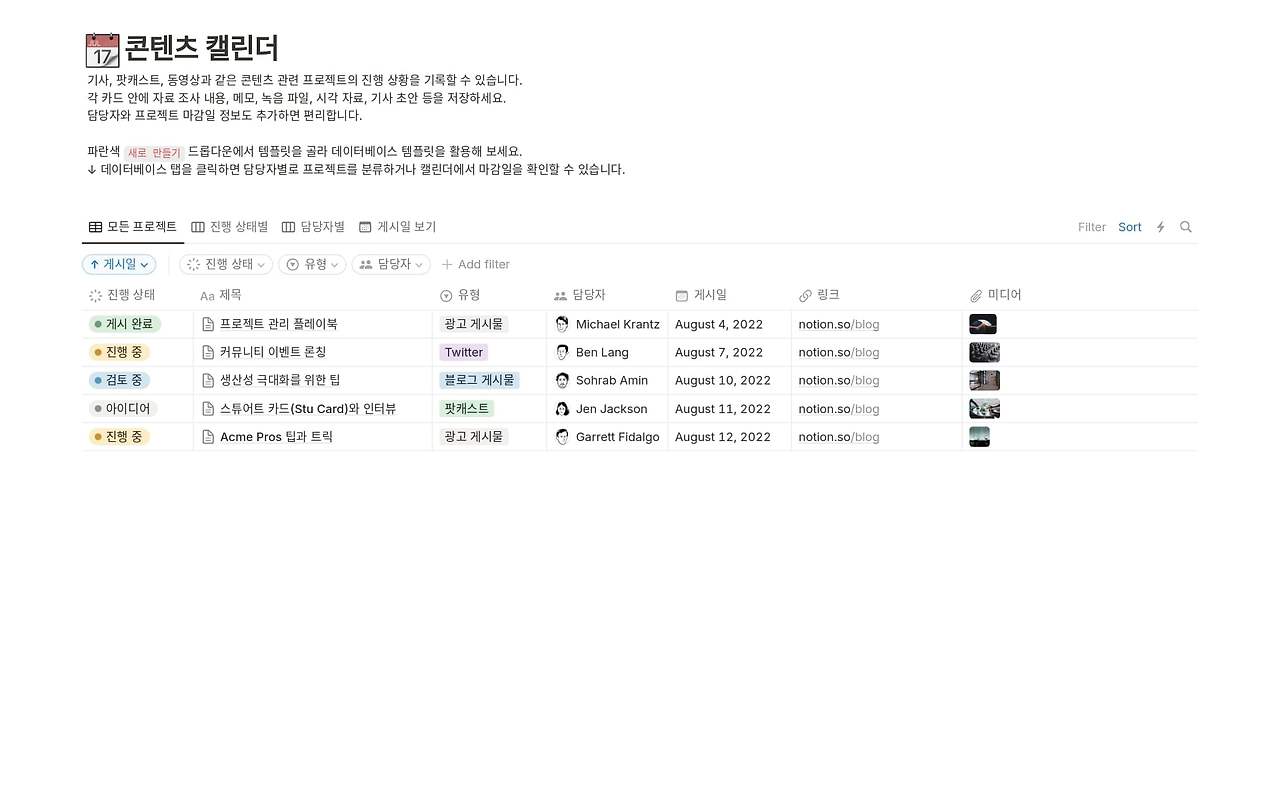 ✔ 콘텐츠 캘린더 자동화