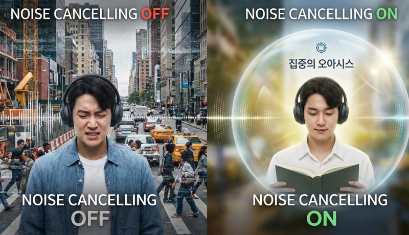 XM5의 노이즈 캔슬링은 ‘소리를 줄인다’기보다 공간을 바꿔버린다는 느낌에 가깝다.