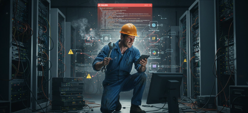 서버 관리와 워크플로우 디버깅 과정에서 발생하는 관리 부담을 상징적으로 보여주는 이미지