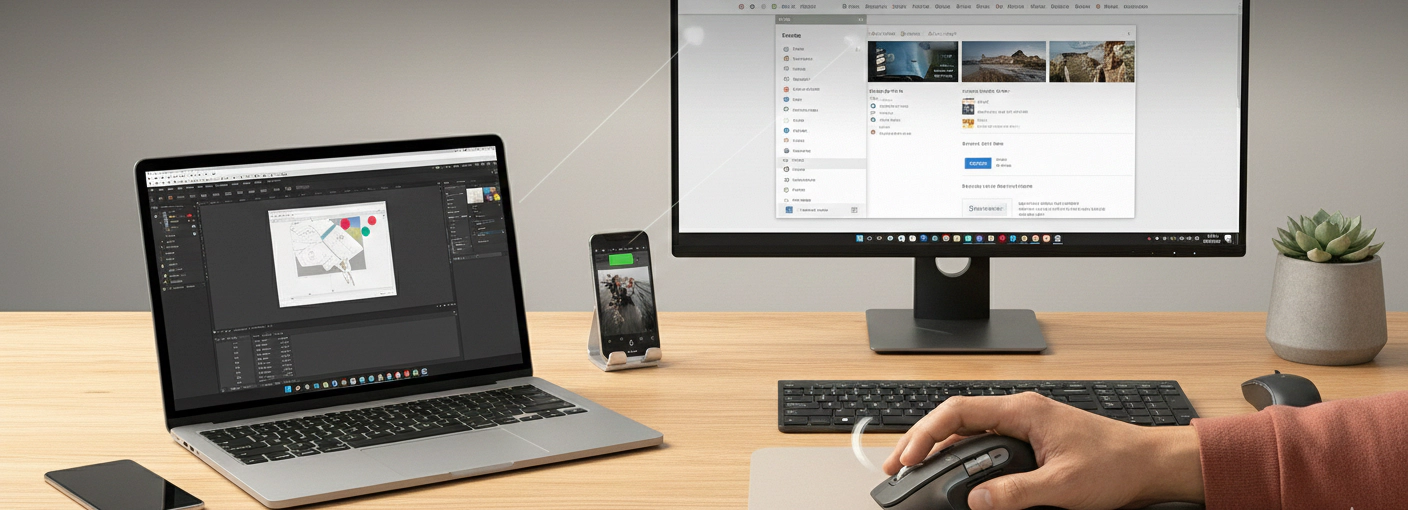 👉 회사 PC + 개인 노트북 같은 환경에서는 마우스 하나로 작업 흐름이 이어진다.