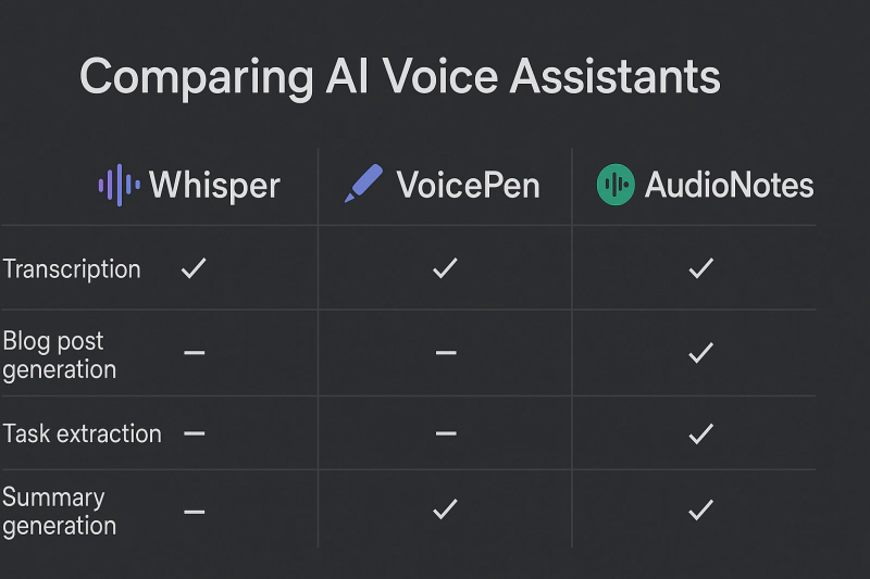VoicePen은 Whisper보다 글쓰기 자동화에 초점을 맞춘 툴이다.