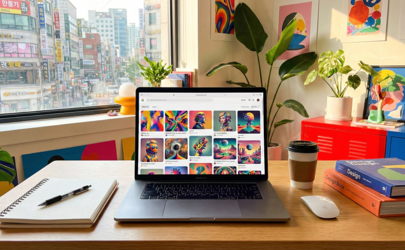 **"노트북을 펴고 코딩하고 있는 미래지향적인 개발자를 그려줘"**라고 채팅창에 치기만 하면, AI가 세상에 단 하나뿐인 고퀄리티 이미지를 10초 만에 그려줍니다.