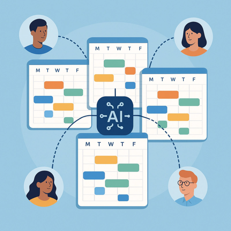 AI 스케줄러는 모든 참여자의 일정을 파악하여 가장 자연스러운 시간을 자동으로 추천합니다.