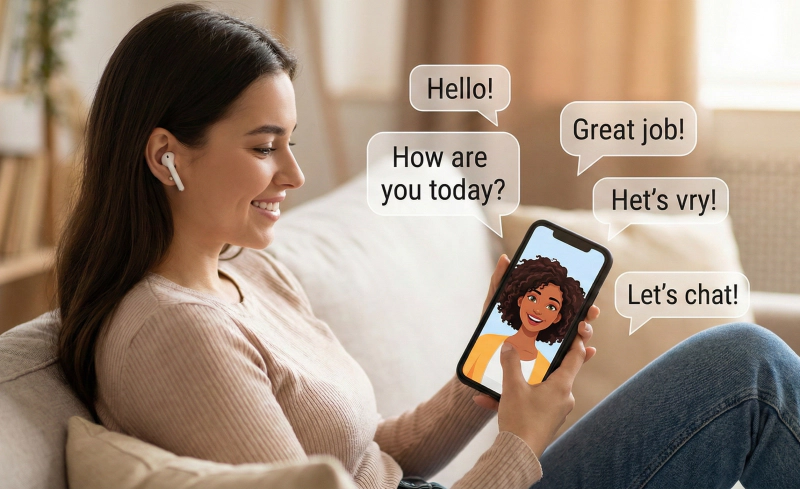 - 특징: 정해진 커리큘럼이 없습니다. 그냥 친구랑 수다 떨듯이 아무 주제로나 떠들면 됩니다. 2026년 업데이트된 '고급 음성 모드'는 숨소리, 웃음소리, 감정까지 표현해서 진짜 사람과 통화하는 착각이 듭니다.