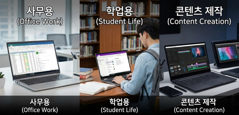 "노트북 뭐 살지 정해드립니다" 2026년 용도별 노트북 추천 가이드 (사무용 vs 대학생 vs 영상편집용)