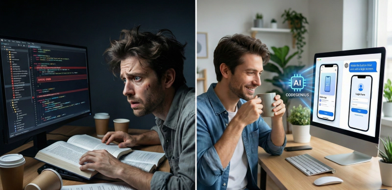 과거에 나만의 프로그램이나 웹사이트를 만들려면, 수개월 동안 복잡한 컴퓨터 언어의 문법을 외우고 까만 화면에 수만 줄의 텍스트를 직접 입력해야 했습니다. 괄호 하나, 쉼표 하나만 빠져도 전체 시스템이 멈춰버리는 고통스러운 과정이었죠.