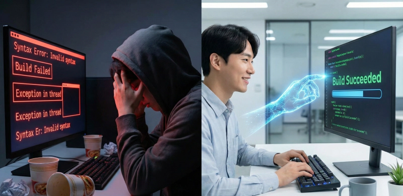 디버깅 스트레스 대 AI코딩 어시스턴트의 성공적인 빌드 비교