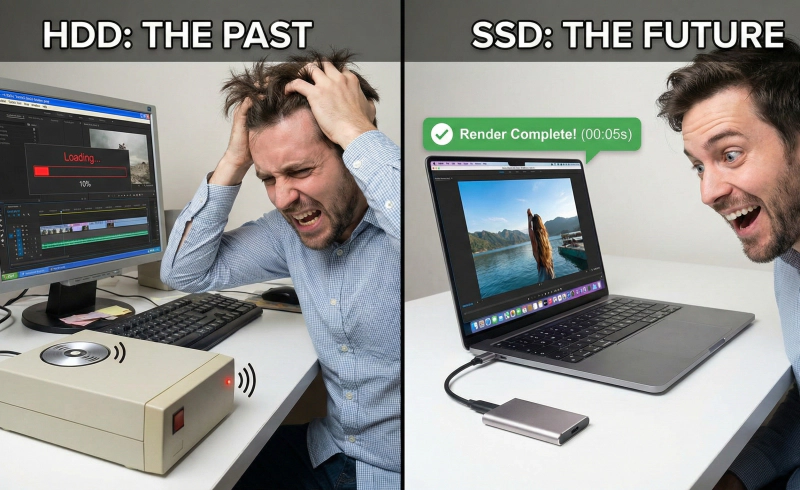 일반 하드디스크보다 20배 빠른 NVMe 기반의 외장 SSD를 꽂는 순간, 버벅거리던 미리보기 화면이 물 흐르듯 재생되는 기적을 경험하게 됩니다.