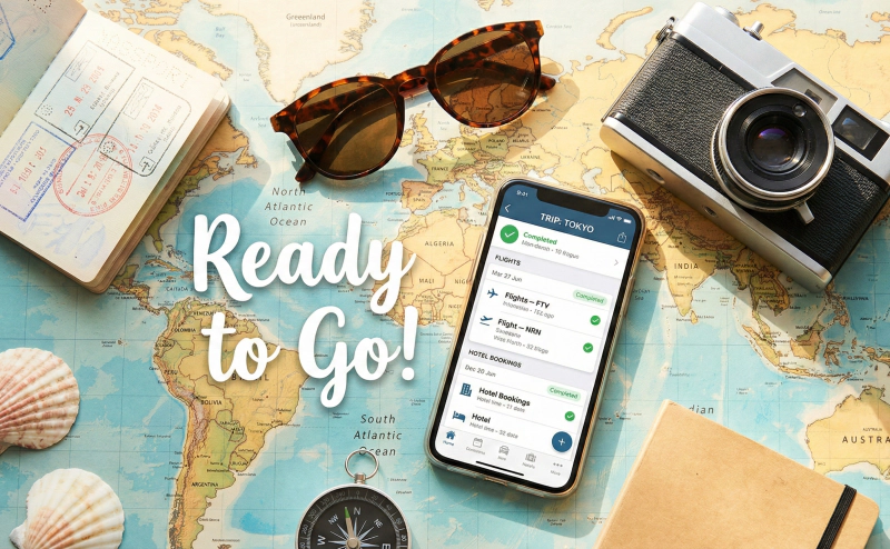 스마트 앱으로 완벽하게 준비된 여행 소품 이미지