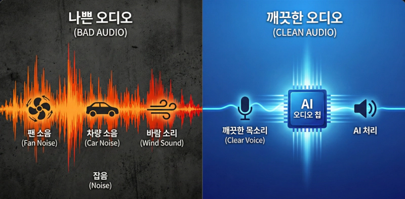 AI가 목소리와 소음을 완벽하게 분리해서, 시끄러운 카페에서 아이폰으로 녹음해도 마치 전문 스튜디오에서 녹음한 것처럼 깨끗하게 바꿔줍니다. 마법이냐고요? 아니요, 기술입니다.