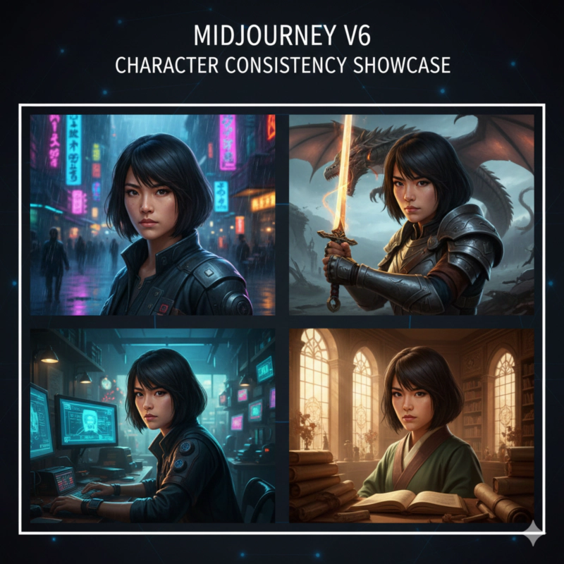 Midjourney V6 이후 캐릭터 일관성이 크게 향상되었다.