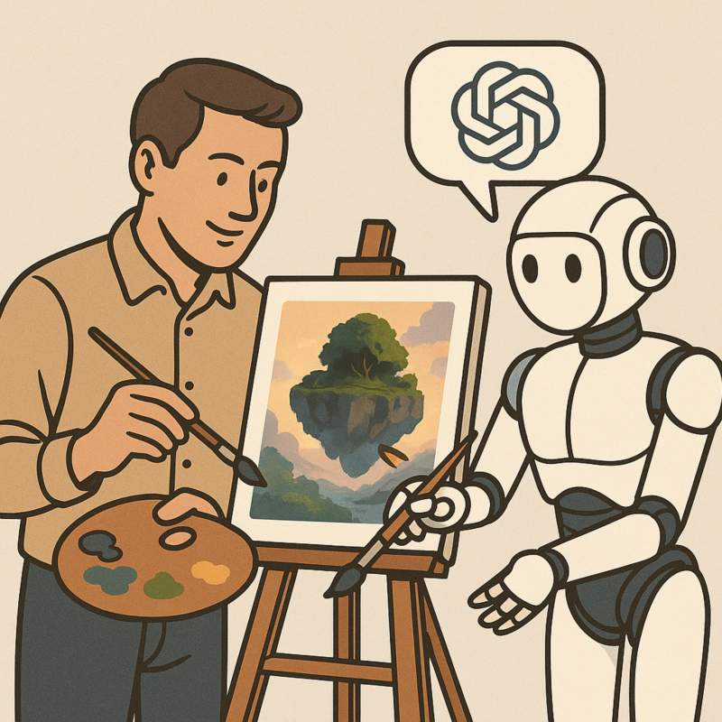 AI와 인간이 협업하여 작품을 완성하는 일러스트