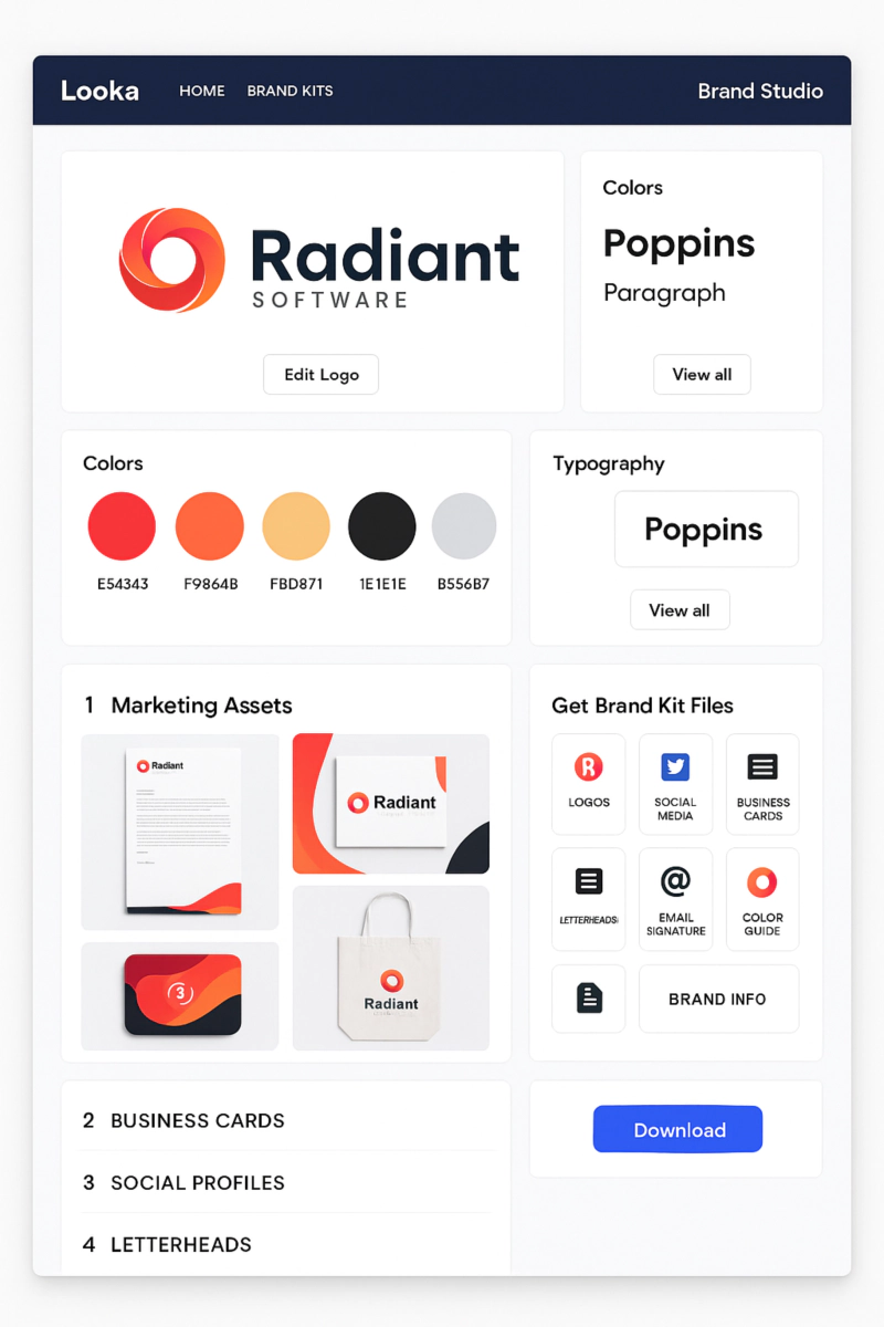 3️⃣ Looka Brand Studio — 브랜드 전체 패키지를 AI가 자동 조립