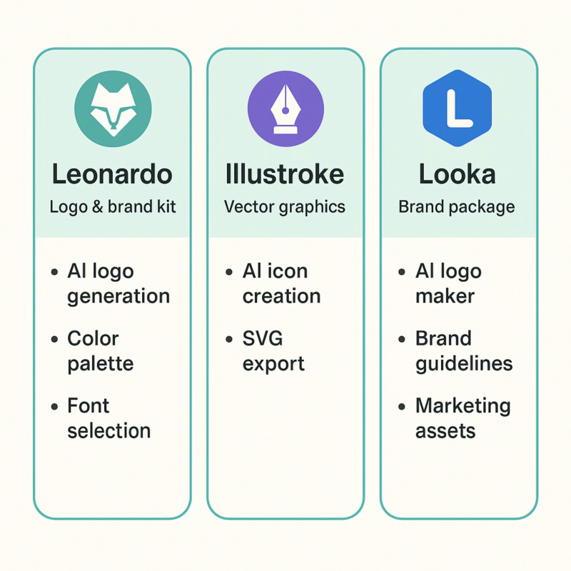 항목, Leonardo BrandKit, Illustroke 2.0, Looka Brand Studio 순