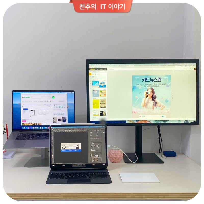 노트북은 그대로 두고 모니터만 업그레이드해도 작업 환경이 완전히 달라집니다.