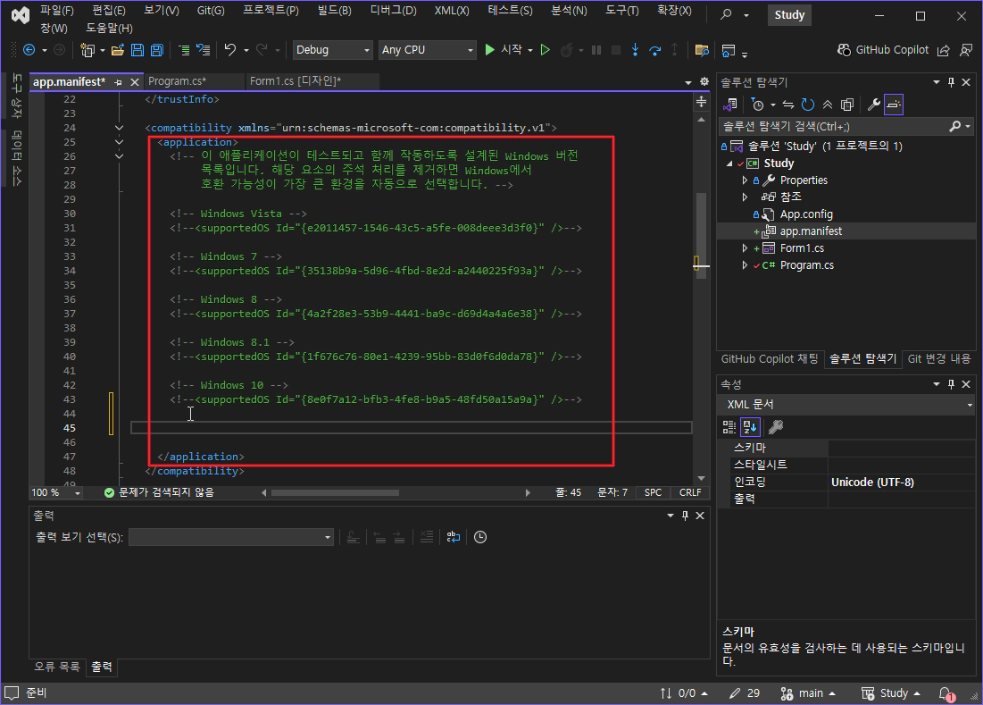 vs2022에서 app.manifest를 추가
