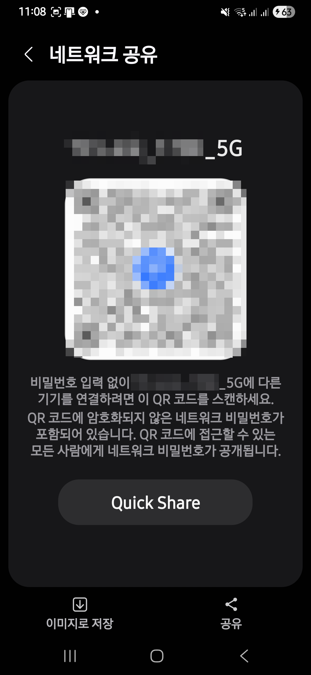 1. 갤럭시에서 와이파이 QR코드 만들기